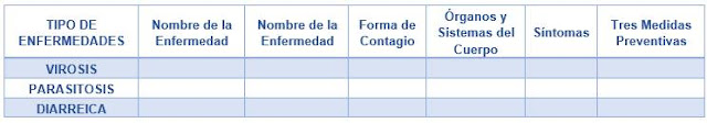 4.Investiga una enfermedad viral, una parasitaria y otra diarreica y luego completa el siguiente cuadro.